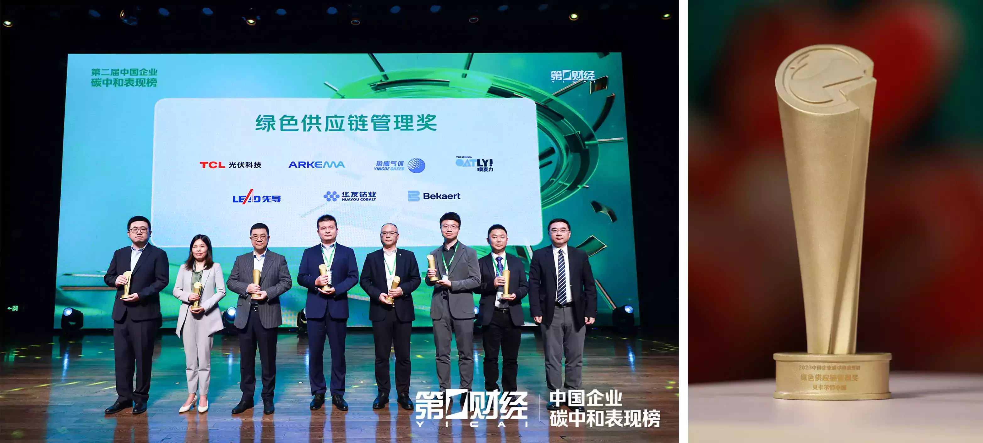 2024年4月22日,在第55个世界地球日里,贝卡尔特荣登第二届中国企业碳中和表现榜,获得“绿色供应链管理奖”,以表彰其在应对气候变化和全价值链可持续建设上的不懈努力和突出成绩。